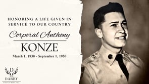 Born on March 1, 1930, in Brooklyn, New York, Anthony was the eldest of eight children; a devoted Son, Brother, Uncle and friend who answered the call of duty with courage and honor. He enlisted in the U.S. Army with a deep sense of patriotism and served his country bravely during one of its most challenging conflicts. At the time of his passing, Anthony Konze was survived by Catherine Konze (Mother), Albert Konze (Father), Emma Kelly, Kathleen DiGesare, Loretta Bergsma, Carol Robertson and Irene Egan (Sisters), John Konze, Frederick Konze, (Brothers), as well as many cousins, nieces and nephews.