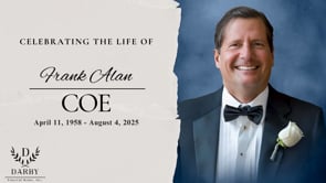 Frank Alan Coe, beloved husband, brother, and grandfather, passed away on August 4, 2025, at 67 in Canton, Georgia. Born April 11, 1958, in Elizabeth, New Jersey, Frank lived vibrantly with sharp intellect and humor.