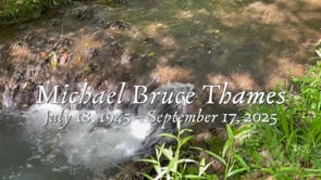 Michael Bruce "Mike" Thames, a believer in Jesus Christ the Son of God, passed away peacefully on September 17, 2025. Mike was born 18 July 1945 in St. Luke's Hospital, Jacksonville, Duval County, Florida. He graduated from Robert E. Lee High School in Jacksonville, Florida with the Class of 1963. He attended Gordon Military College in Barnesville, Georgia and in 1965 earned an Associate Arts Degree from North Florida Junior College in Madison, Florida. On 31 December 1966 he married Rebecca Jane "Becky" Edwards in Canton, Cherokee County, Georgia. It began a marriage that lasted 58-plus years. (Mike loved life and he loved Becky.) In 1968 Mike graduated from the University of Georgia in Athens, Clark County, Georgia with a Bachelor of Arts Degree in Journalism-Advertising and Public Relations. After graduation they moved to Atlanta, where Mike was involved in the public relations for the opening of Georgia Power's Edwin I. Hatch Nuclear Power Plant near Baxley, Appling County, Georgia. He then became Editor of Southern Business and Realty in Atlanta, covering business, real estate and the political news of the day. Later Mike accepted a job as Managing Editor of The Financial News and Daily Record, Jacksonville, Florida's legal newspaper, and the couple moved to Jacksonville. Before establishing his own business, Mike explored opportunities as an insurance agent with Aetna Life and Casualty Insurance Company, as a sports writer at the Florida Times Union newspaper, and as editor of The Westside Story, a local community newspaper. In 1981 he opened Thames Creative Communications, a boutique for creative marketing and public relations, where he produced award winning ads, brochures, and print materials for businesses like Gulf Life Insurance, Jacksonville Board of Realtors, Revlon, The Colomer USA Group, Parker Electronics (a Carrier affiliated company), and Crowley Maritime Corporation. The Jacksonville Advertising Federation recognized Mike's creative work with "Addy" Awards for outstanding copywriting for the Jacksonville Board of Realtors and a British Graphic Design Company. In 2000 Mike moved his marketing business to Atlanta and after retiring briefly worked as an agent for AFLAC. In 2010 he founded "Encouraging Words", providing a weekly uplifting word to subscribers. While in Jacksonville Mike was an active member of St. Peter's Episcopal Church, a charismatic church where he was a lay reader/minister and participant in healing ministry. His church work continued in Georgia at Church of the Messiah, where he encouraged church growth through marketing efforts. He loved sharing Jesus with others. An avid reader, Mike enjoyed working with the "Give A Kid A Chance" back to school program in Cherokee County, working out at the gym, watching auto racing (especially NASCAR) and rooting for his Georgia Bulldogs.